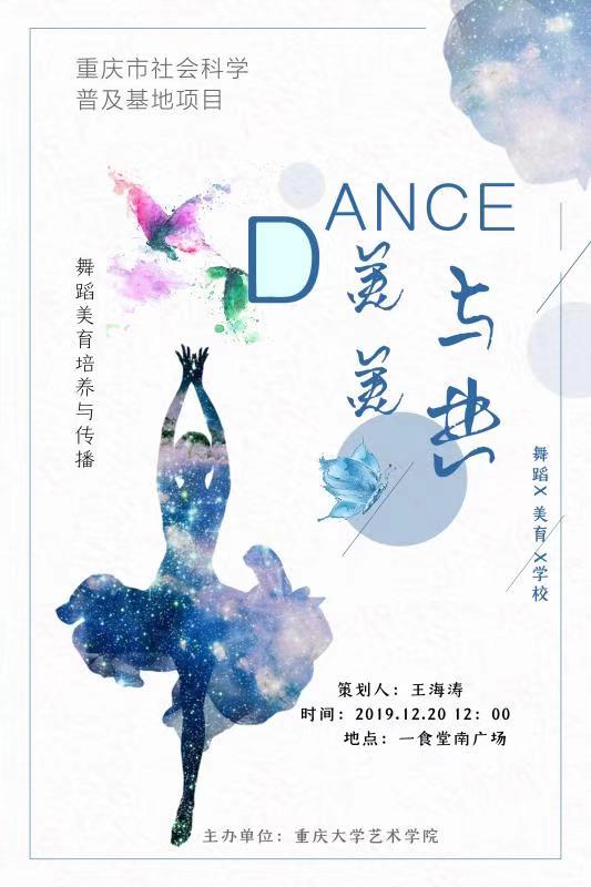 ​2019年12月20日中午,蘑菇视频 王海涛副教授作为此次活动的负责人,带领舞蹈学研究生团队,在蘑菇视频 虎溪校区一食堂南广场举办了“重庆市社会科学普及基地“2019年科普系列活动之一《美美与共——舞蹈美育培养与传播》科普活动。本次活动主题鲜明,形式多样,趣味十足,引来大批学生驻足,并积极参与活动。现场气氛活跃,科普活动圆满成功。活动开始前,舞蹈学研究生们在活动地点布置场地,准备精美的奖品,播放宣传ppt,营造...