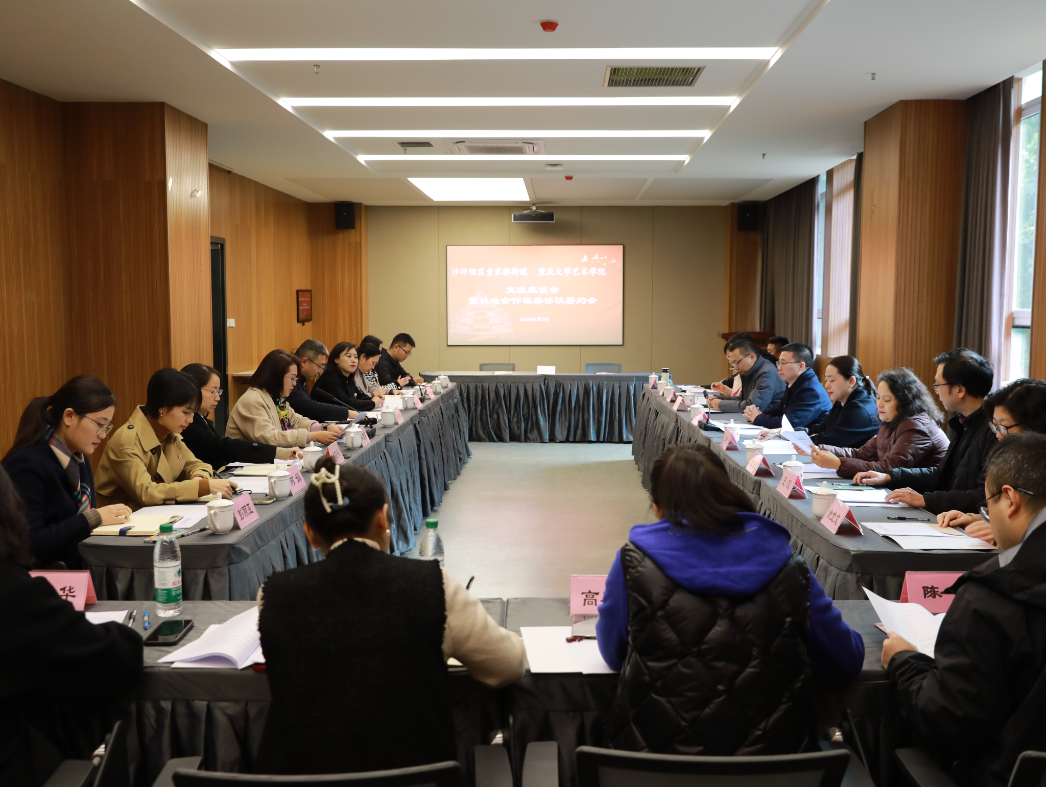 2024年11月27日下午,蘑菇视频 到童家桥街道红岩党群服务中心与童家桥街道进行交流座谈,并成功签署院地合作框架协议。蘑菇视频 党委书记蒋华林、副书记王琦、副院长夏进军及党政办、院团委、美术学系、设计学系、音乐系等有关负责人,童家桥街道党委书记秦湛毅、主任刘魁萍、人大工委主任冉茂琴、副书记饶庆及有关方面工作负责同志、辖区社区党委书记等出席。冉茂琴主持交流会。​秦湛毅对蘑菇视频 一行来到童家桥街道交...