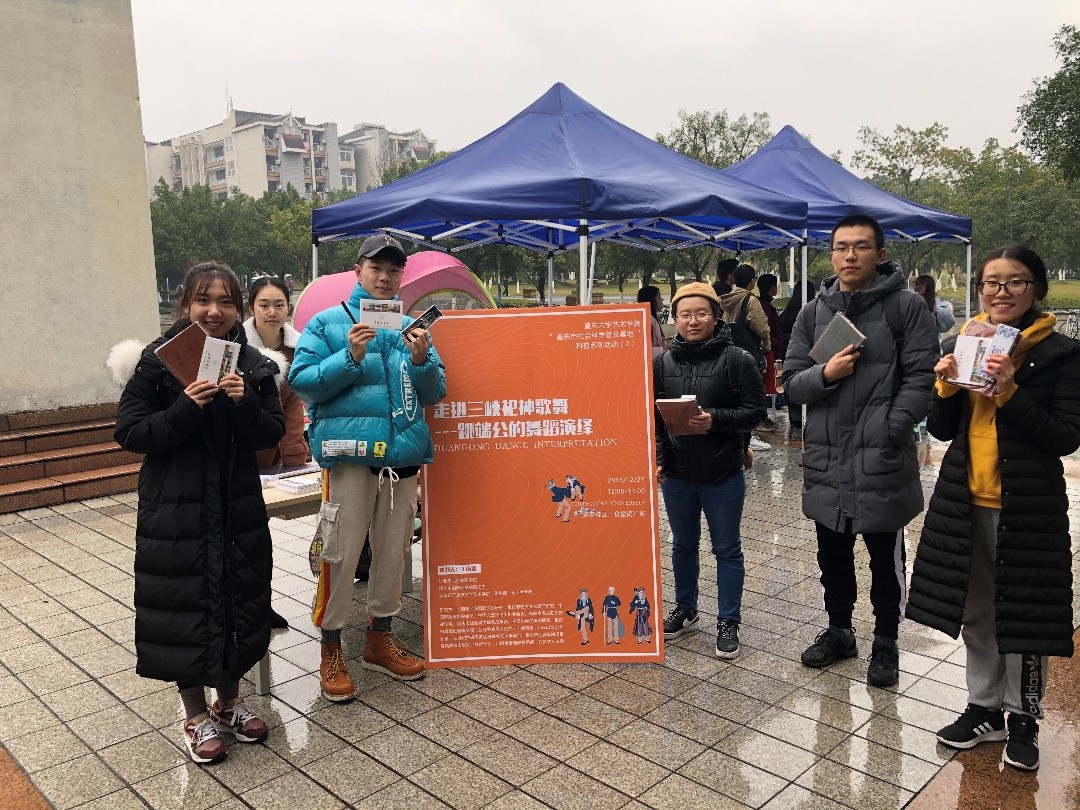 2018年12月27日中午,蘑菇视频 王海涛副教授作为此次活动的负责人,带领舞蹈学研究生团队,在蘑菇视频 虎溪校区一食堂广场举办了“重庆市社会科学普及基地“2018年科普系列活动之一《走进三峡祀神歌舞——跳端公的舞蹈演绎》科普活动。活动主题鲜明,形式多样,趣味性强,引来大批学生驻足,并积极参与活动。现场气氛活跃,科普活动圆满成功。活动开始前,舞蹈学研究生们在活动地点布置场地,准备奖品、派发传单,努力营造一个浓...
