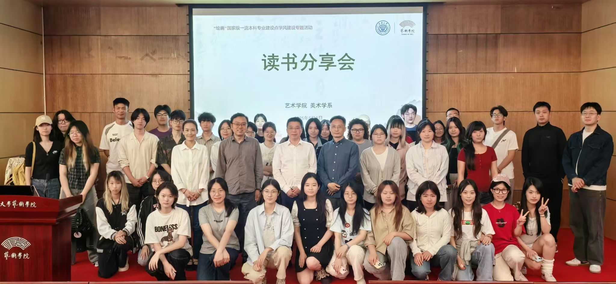 2025 年 5 月 8 日14:00,美术学系在学院学术报告厅开展了学风建设专题活动——读书分享会。​此次分享会由美术学系各年级班主任共同组织,旨在落实“五育并举”育人方针,通过读书分享,激发学生阅读热情,营造勤学善思的班风、学风,增强学生社会责任感和历史使命感。 分享会由美术学系班主任高源副教授策划主持。学院党委书记蒋华林出席并讲话。美术学系主任肖力、副主任王汉,班主任杨小语、孙天龙、赵颂淳以及部分学生参加...