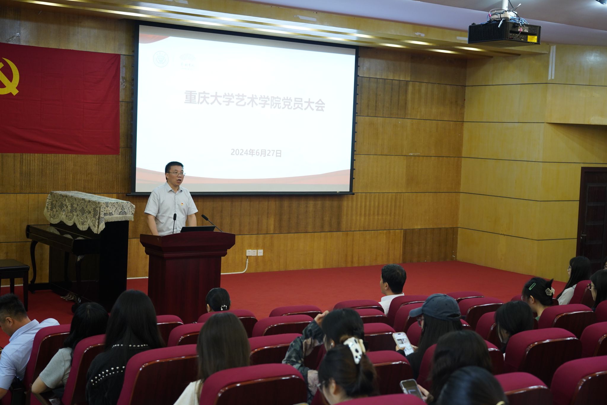 正值中国共产党成立103周年之际,根据工作需要,2024年6月27日下午,蘑菇视频 党委在办公楼二楼报告厅组织召开学院党员大会暨党员政治生日和教职工自然生日座谈会。院长张楠木,党委副书记、纪委书记王琦,副院长彭小希及全体在校师生党员参加会议。学院党委书记蒋华林主持会议。会议在全体党员同志共唱国歌声中开幕。会议首先由张楠木同志为领誓人,带领今年入党新党员进行入党宣誓、老党员重温入党誓词。王琦组织学...
