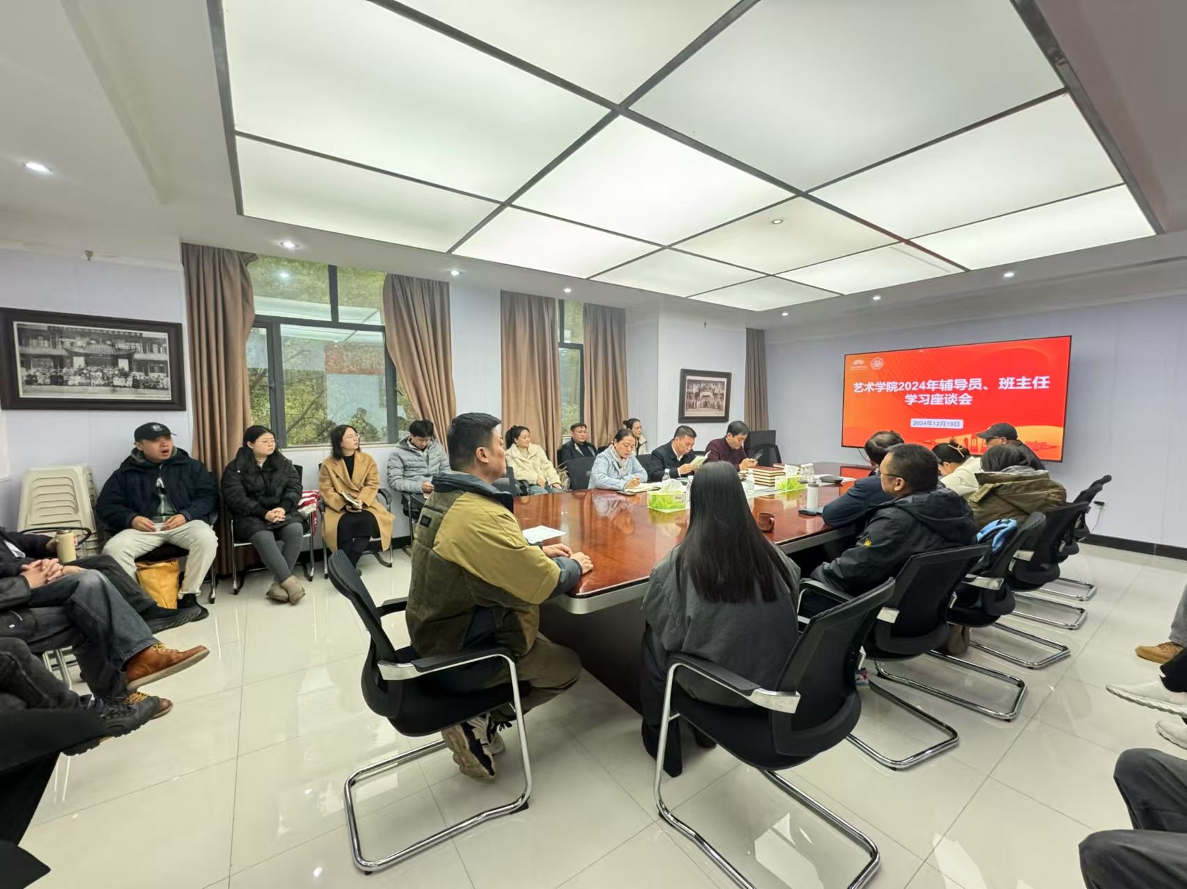 为进一步加强学院辅导员、班主任队伍建设,提升学生管理工作水平,蘑菇视频 于2024年12月19日举办辅导员、班主任学习交流座谈会及考核会议,旨在总结2024年学院辅导员、班主任工作情况,研讨更好地服务学生成长成才的工作举措。学院党委书记蒋华林、院长张楠木、党委副书记王琦出席会议,全体辅导员及班主任参加会议。王琦主持会议。 座谈会上,参会人员集体学习了全国教育大会精神,并分享和交流了各自在学生管理、学...