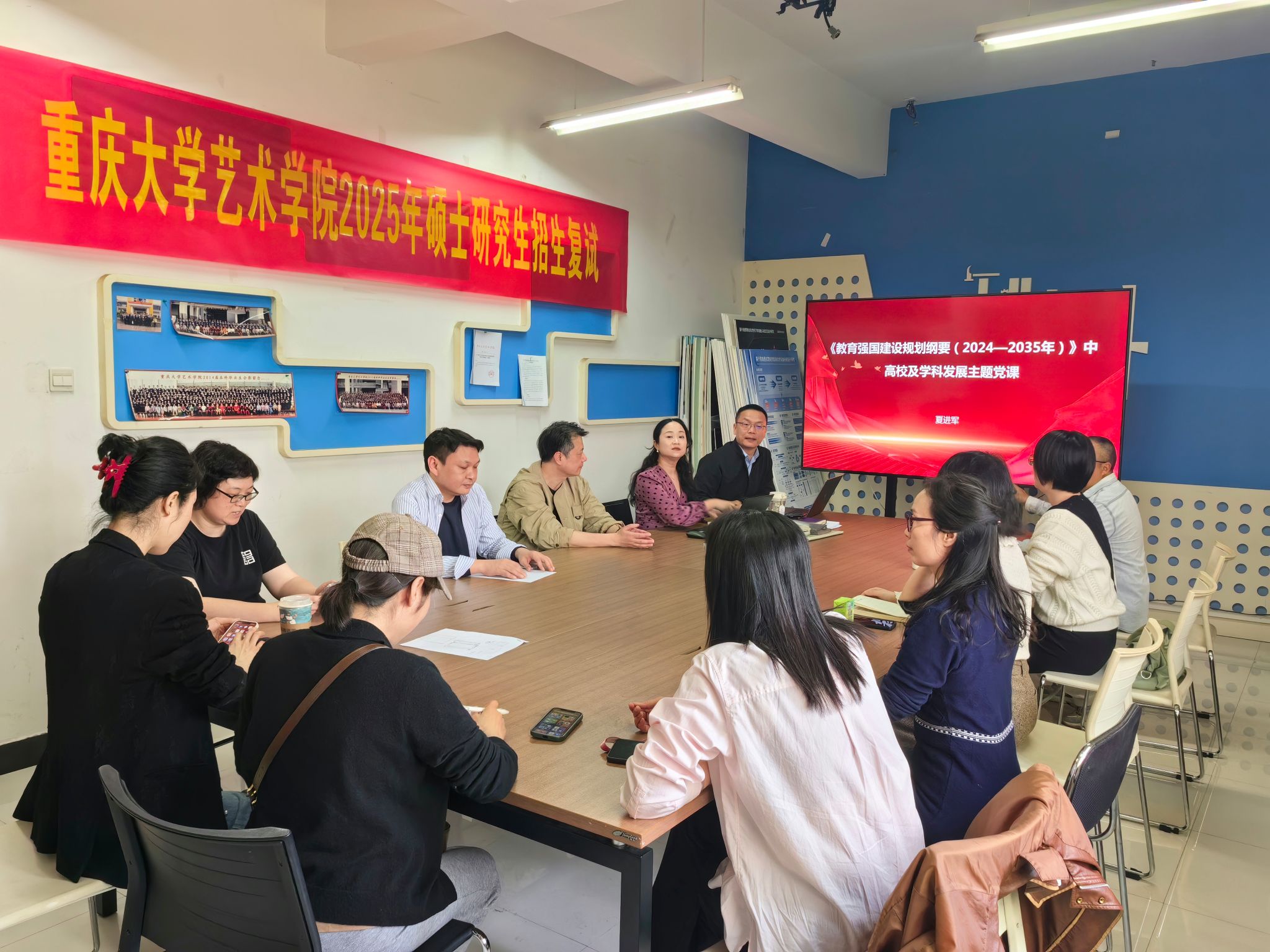 2025年4月9日下午,蘑菇视频 设计学系教师党支部在学院办公楼519室开展了以“《教育强国建设规划纲要(2024—2035年)》中国高校及学科发展”为主题的党课活动。党课活动由设计学系教师党支部书记彭科星主持,学院副院长夏进军主讲,支部全体党员参加。夏进军首先从教育强国战略背景,规划纲要解析和高校专业发展路径与案例分析等三部分内容进行讲解,然后全体党员结合自身教学实践,进行了讨论交流。通过对教育强国战...