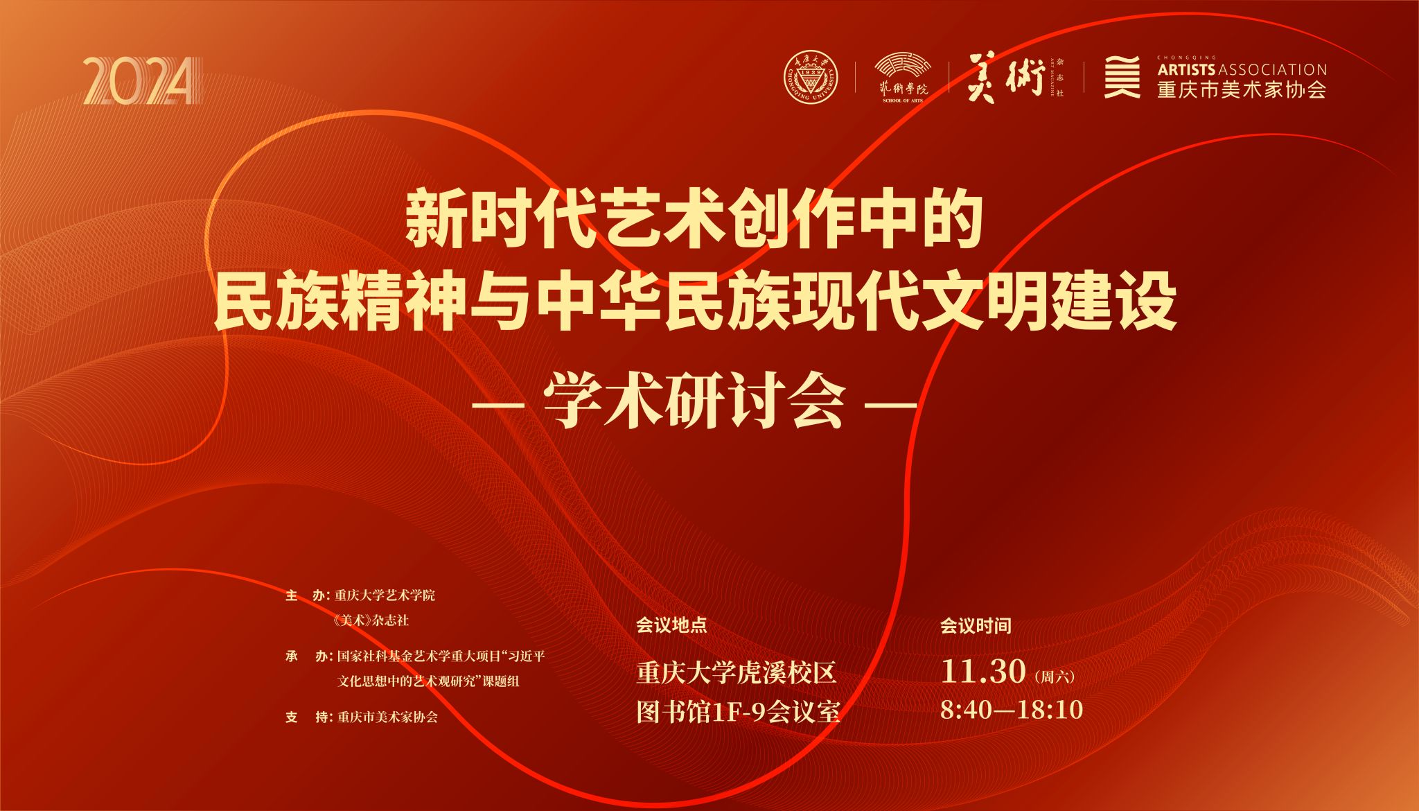 由蘑菇视频 、《美术》杂志社联合主办,国家社科基金艺术学重大项目“习近平文化思想中的艺术观研究”课题组承办,重庆市美术家协会支持的“新时代艺术创作中的民族精神与中华民族现代文明建设”学术研讨会,定于2024年11月30日(星期六)在蘑菇视频 虎溪校区图书馆1F-9会议室举办。本次研讨会聚焦新时代艺术创作中民族精神的表达问题,讨论其与中华民族现代文明建设之间的深刻关联。研讨会将邀请来自中国文联出版社、清...