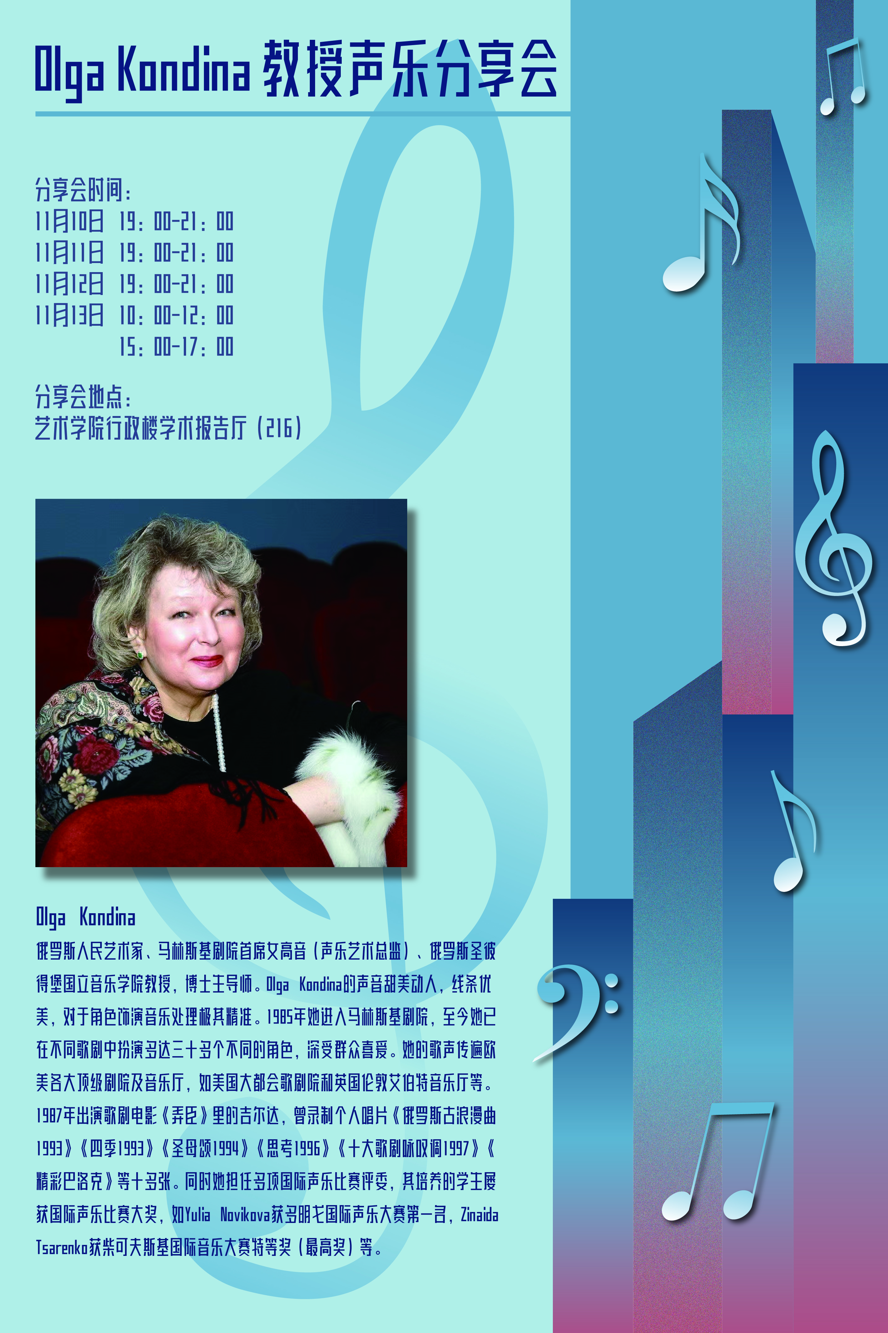 主讲嘉宾:Olga Kondina(俄罗斯人民艺术家,马林斯基剧院首席女高音,俄罗斯圣彼得堡国立音乐学院教授、博士生导师)主持人:喻思言(蘑菇视频 音乐系副系主任 副教授)时间:11月10日 19:00-21:0011月11日 19:00-21:0011月12日 19:00-21:0011月13日 10:00-12:00 15:00-17:00地点:蘑菇视频 科学城校区蘑菇视频 行政楼学术报告厅(216)主办单位:蘑菇视频 承办单位:蘑菇视频 音...