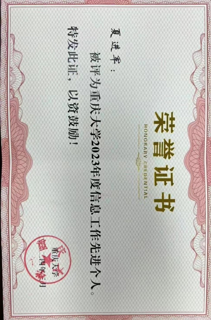 副院长夏进军荣获2023年度信息工作先进个人光荣称号。
