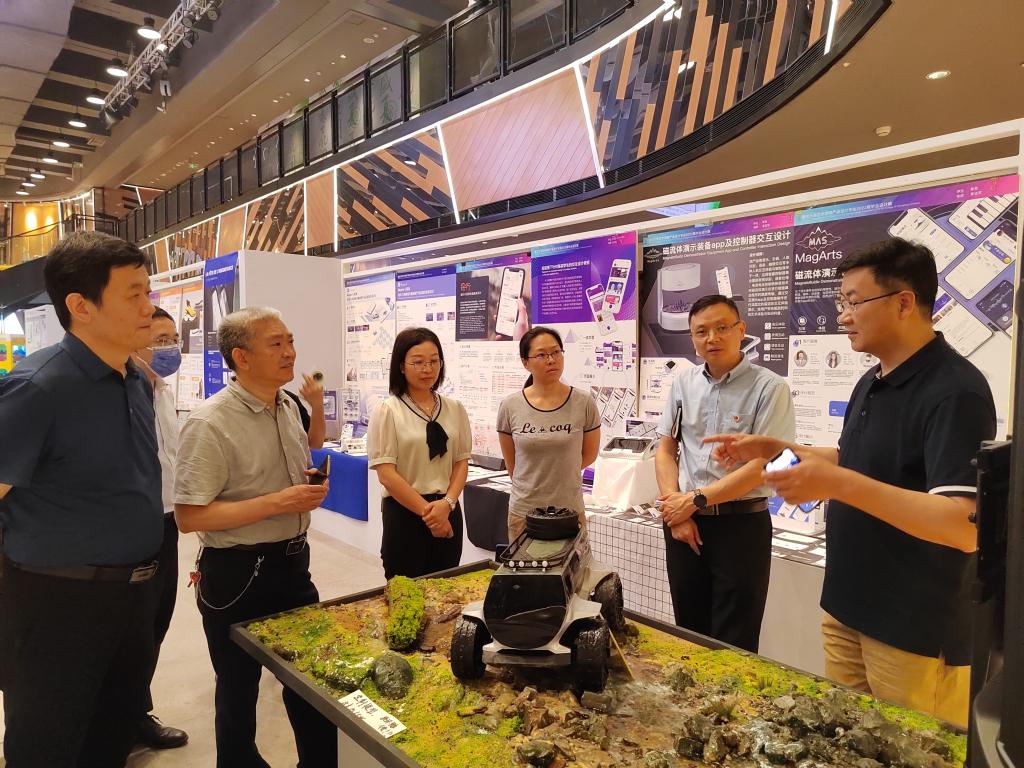 院长雒三桂对各专业展厅作品进行了介绍,他针对设计思路、创作过程、学生的创作程度、社会价值等方面进行了讲解说明。雒院长在说明过程中谈到,此次展览是推动高质量协同育人创新机制的积极探索,凝聚了广大师生的心血,多层次展示了学生的艺术素养,展现了教师的教学水平,是艺术教育服务于社会的重要体现,有利于塑造蘑菇视频