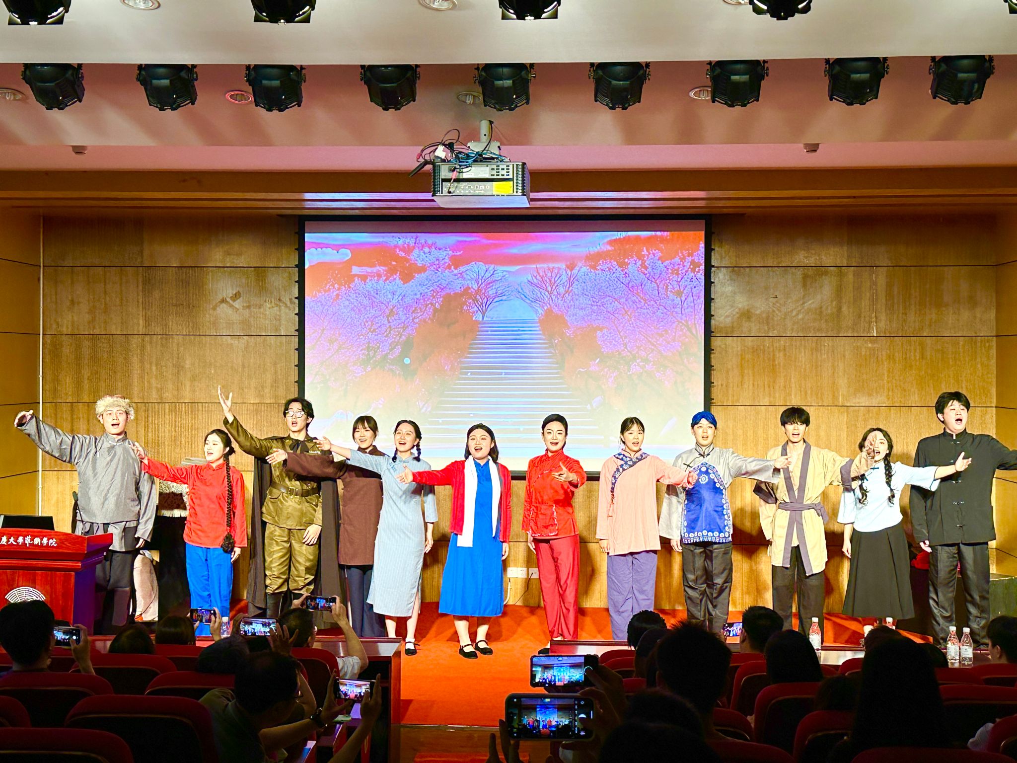 表彰仪式后,音乐系教师党支部牵头,联合研究生第一党支部承办了“艺”心向党——蘑菇视频 党委迎“七一”经典歌剧片段音乐会。音乐系师生党员带来的《白毛女》《江姐》等红色歌剧经典片段,不仅展现了音乐系人才培养的成果,更是生动演绎了党员对党的无比忠诚与坚贞。