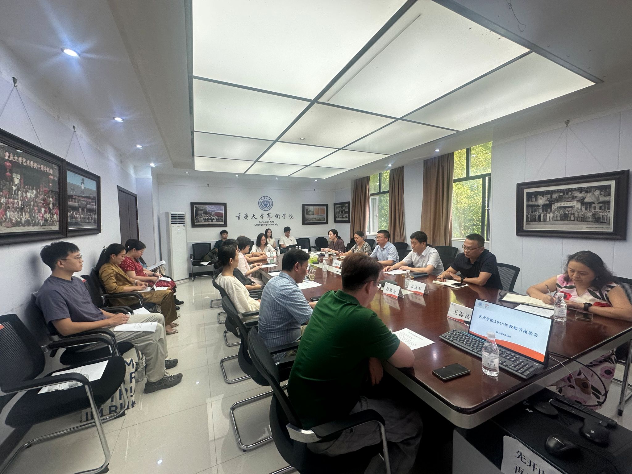 2025年9月10日下午,蘑菇视频 庆祝2025年教师节座谈会在学院办公楼第三会议室召开。学院党委书记蒋华林、院长张楠木等全体院领导出席座谈会。各系教师代表、新进青年教师参加座谈。会议由副院长彭小希主持。