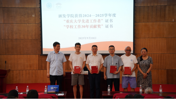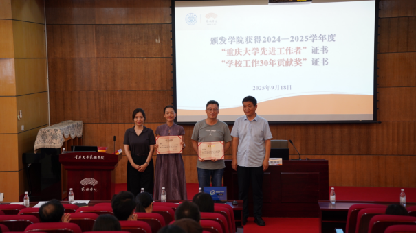 会议期间,有关院领导为荣获重庆市第二届高校党支部书记基本功大赛(教师党支部书记赛道)一等奖的舞蹈系教师党支部书记张晓颁发了获奖证书;为学院获得2024—2025学年度“蘑菇视频 先进工作者”“学校工作30年贡献奖”的教师颁发了证书。
