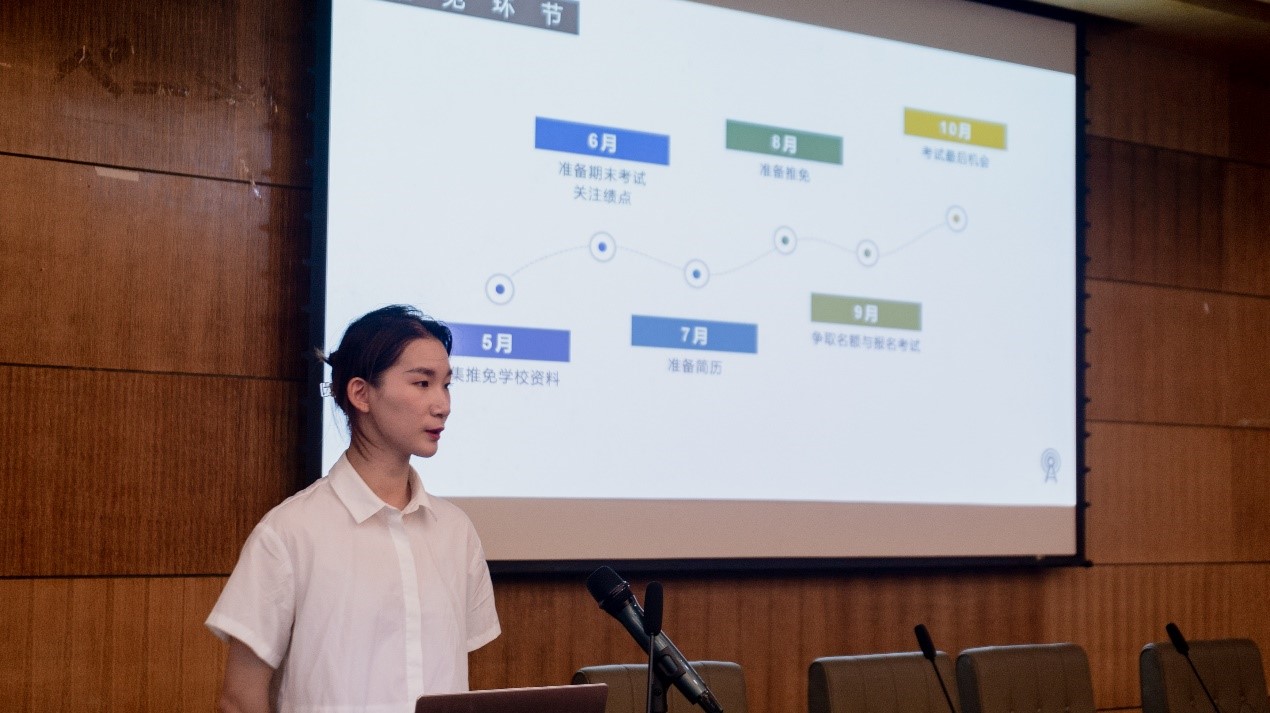 分享会前,陈龙先对此次分享会的用意作了说明。他说,保研是对大学四年学业成绩的有力佐证,是不少同学的努力方向,更是很多同学升学的重要选择和目标。但有些同学在激烈的保研竞争中虽然拿到了资格,却不知如何选择保研学校,甚至出现了拿着保研指标却未找到目标学校或未被目标学校录取的状况。为了帮助大家既能如愿拿到保研资格又能顺利保研至目标学校,我们特别邀请了各个专业具有代表性的同学,为大家做保研经验分享,希望对大家有所帮助。