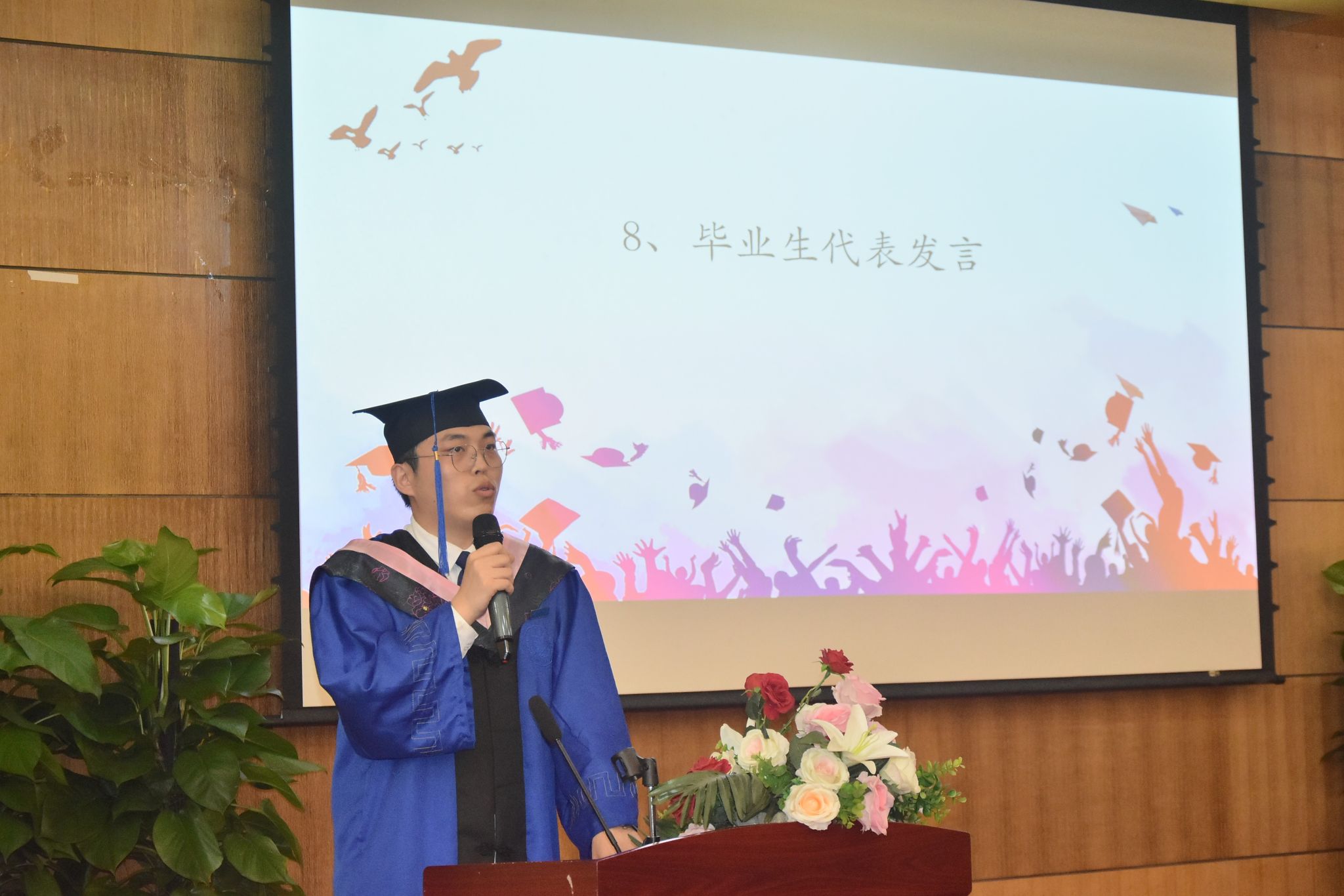 随后,毕业生代表孟凡威和教师代表王汉副教授分别讲话。孟凡威同学对母校表示感谢,讲话中他回望了在蘑菇视频