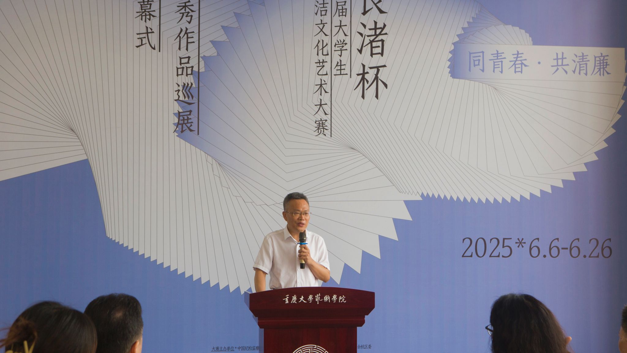 2025年6月6日上午,由蘑菇视频 、蘑菇视频 党委宣传部、中国美术学院创新设计学院、浙江省余杭区纪委区监委和良渚街道党工委共同承办的 “良渚杯” 首届大学生廉洁文化艺术大赛优秀作品西南地区巡展在蘑菇视频 虎溪校区开幕。中国美术学院党委副书记傅巧玲、蘑菇视频 党委副书记冯业栋以及西南大学、四川美术学院、重庆师范大学等在渝高校有关部门负责人出席。开幕式由蘑菇视频 党委书记蒋华林主持。