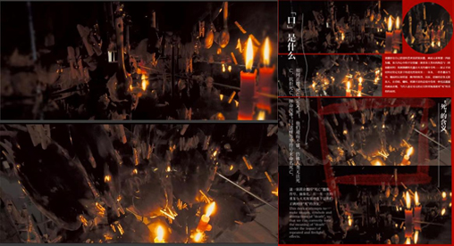 作品《“口”是什么》是一件实验性空间艺术装置作品。主要表达当代人群对死亡的回避与对事实真相的漠视。作品四面为镜,放大内心中的不安情绪;被熏染上黑灰的陶瓷勺(奶油胶材料)和被捆绑的光盘在火光灼烧中尖叫——展示不同材料在特定光影下的透光性和效果;一条条、一件件悬吊当中,镜面的反射将这一阵列的惨烈、沉寂、震撼的景象无限放大。在昏暗、暧昧、模糊不清的意境中得到一种更高层级的画面表现。当代人总是毫无约定且默契地逃避面对“死”的真相,他们避而不谈,仿佛人类无法死亡,抗拒死亡,拼命找寻“口”等等这样的符号来命名死亡。这一装置企图将“死亡”图像、符号、抽象化,在一次一次的重复与火光效果冲击下让我们直面“死”的真相。