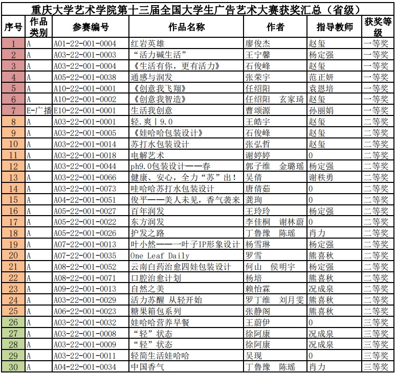 附:重庆市级及国家级获奖名单、国家级获奖作品赏析