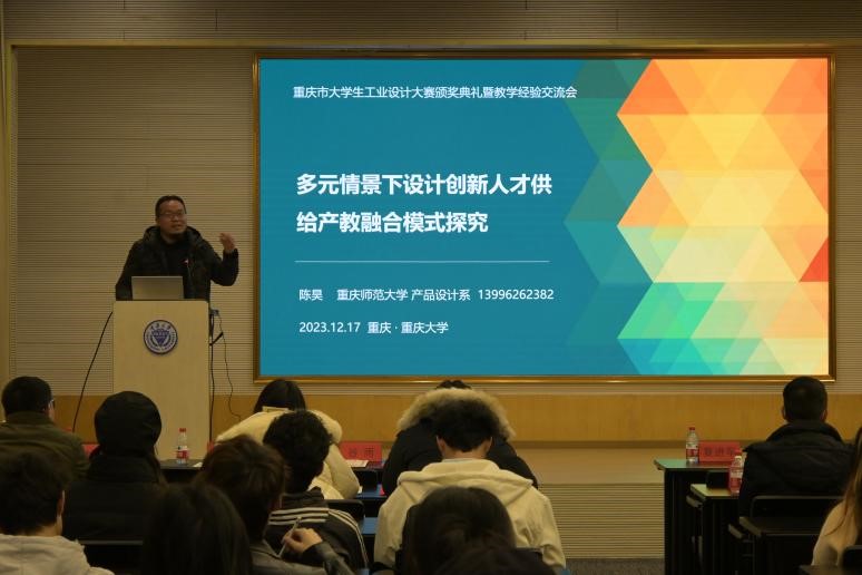 2023年12月17日,2023重庆市大学生工业设计大赛颁奖典礼及教学经验座谈会在蘑菇视频 成功举办,四川美术学院、重庆师范大学、重庆交通大学、重庆邮电大学、重庆工商大学、长江师范学院等重庆市16所高校产品、工业设计专业的100余名师生参加。会议由蘑菇视频 设计学系副主任刘云国主持。