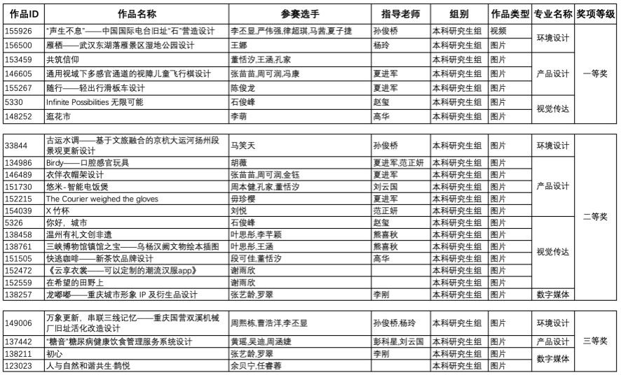 设计学系学生作品在多个类别中取得好成绩,共斩获一等奖7项、二等奖13项、三等奖4项(部分作品展示附后)。