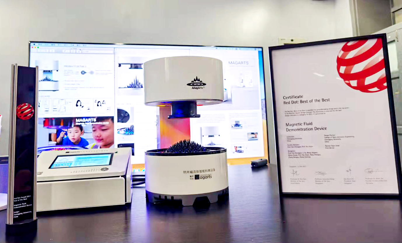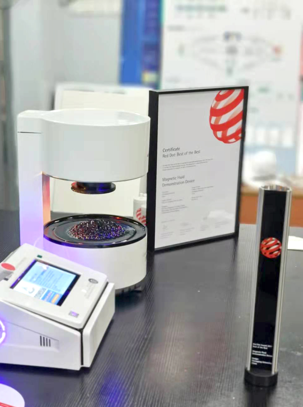 设计团队完成的作品《Magnetic Fluid Demonstration Device磁流体演示仪》参与了红点奖设计概念(design concept)类的评选,一举获得该类别的Best of the Best至尊奖。