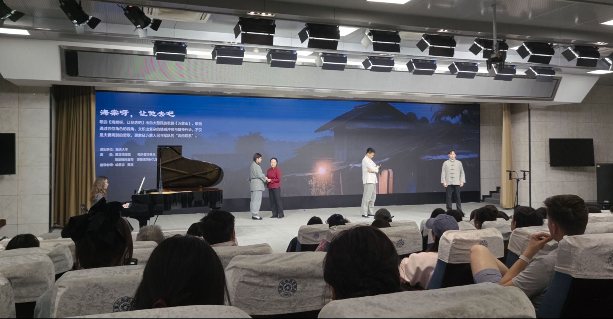 同时,喻思言指导的《一半》(选自歌剧《再别康桥》)、黄慧指导并参演的《海棠 让他去吧》(选自歌剧《沂蒙山》),凭借细腻情感与高超演唱技巧,双双斩获优秀展演奖,并荣获优秀指导教师奖。这既是对两位教师专业能力的认可,也是对学院音乐系教学成果的肯定。