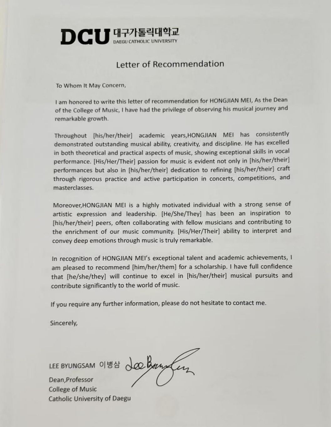 音乐系学子的风采。其在赛事中的优异表现也获得了评委们的高度认可,韩国大邱加图立大学音乐学院院长李炳杉教授亲自授予梅洪健该校研究生offer。