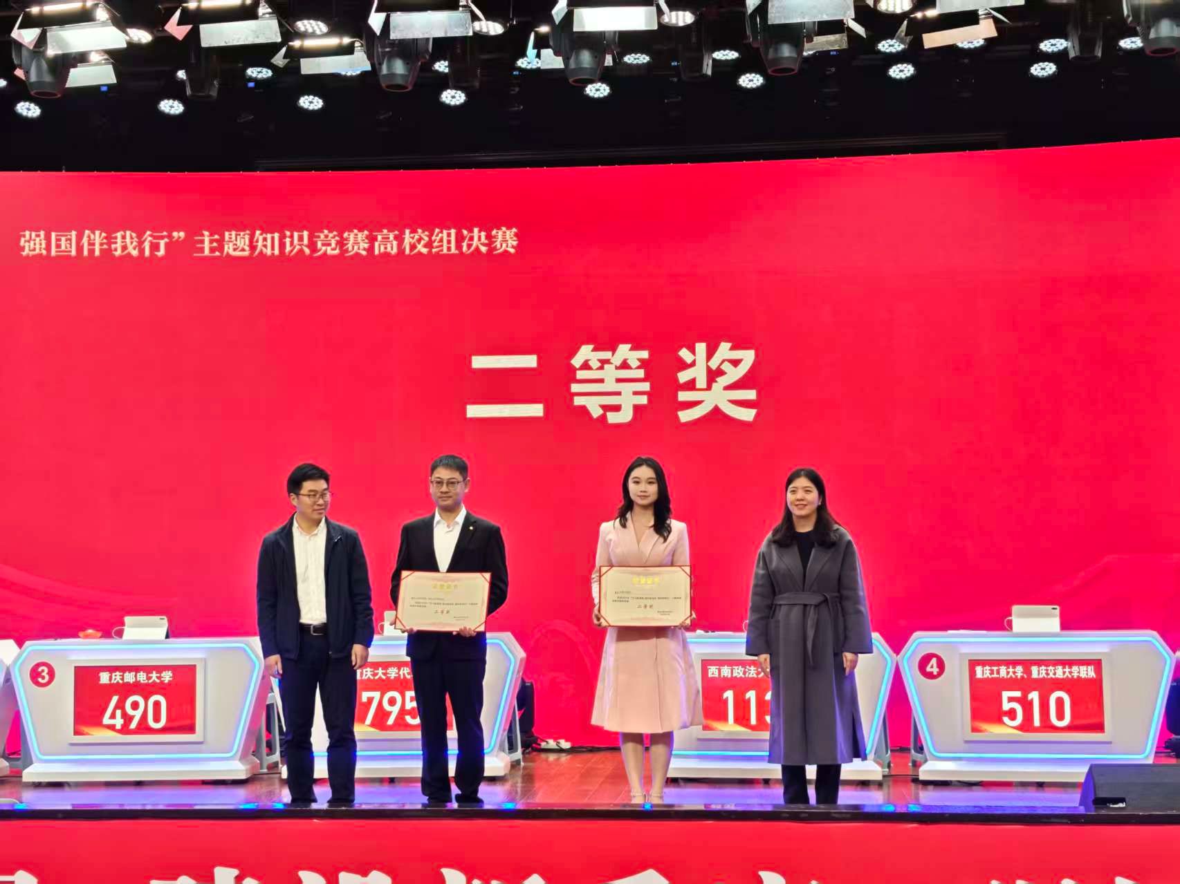 决赛现场,宣讲选手刘芯怡以《“洞见”新重庆:从烽火记忆,到幸福坦途》为题的宣讲,赢得了评委高度评价;答题选手闫昊华和洪扬出色地完成个人答题和抢答环节。