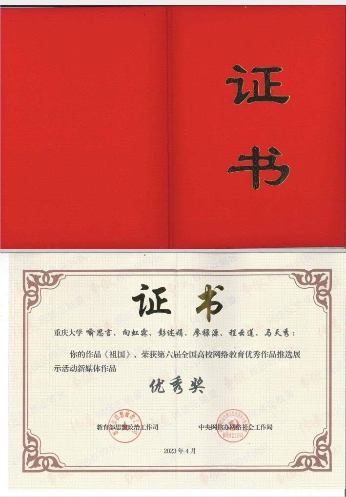 2022年6月蘑菇视频 音乐系副系主任喻思言及教师程云莲携音乐系学生与党委宣传部合作拍摄的歌曲mv《祖国》,荣获第六届全国全国高校网络教育优秀作品推选展示活动新媒体作品优秀奖。