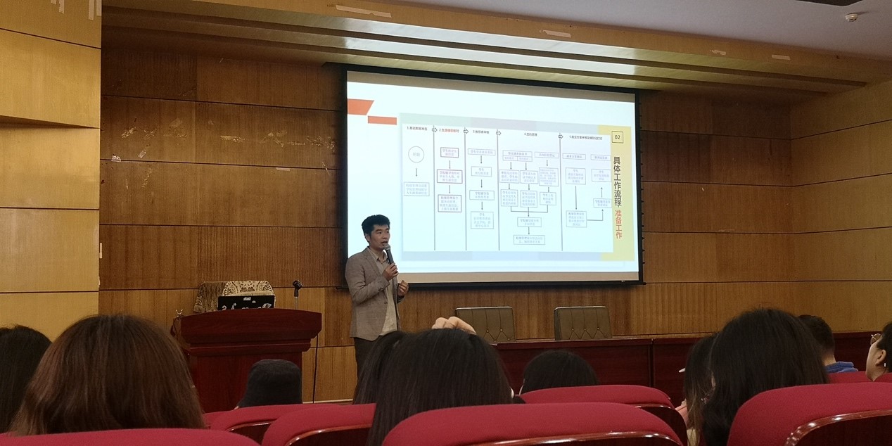 紧接着,陈龙介绍了学校毕业就业网上系统的使用方法和操作流程,针对同学们非常关心的择业流程、签约时间、相关政策及注意事项进行了详细的讲解,并配合着PPT为同学们细致清晰地梳理了重要的时间节点和关键的网上系统使用步骤。