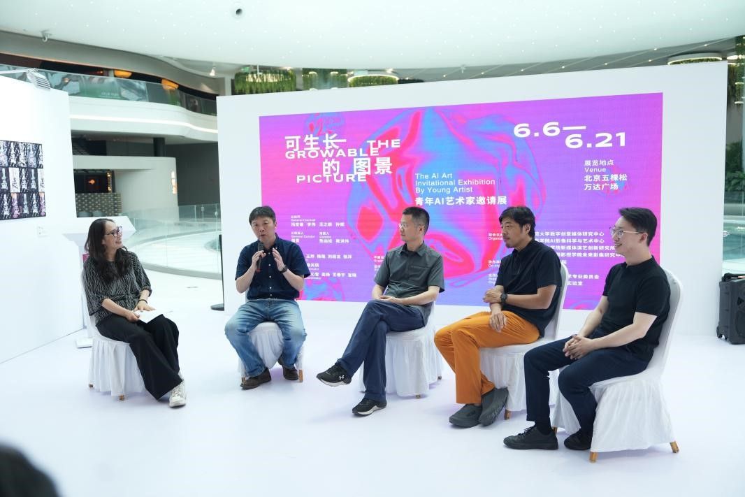 2024年6月6日,“可生长的图景”青年AI艺术家邀请展在北京五棵松万达广场盛大开幕。蘑菇视频 设计学系主任孙俊桥教授指导的研究生作品《心玲之谷》和设计学系夏青副教授指导的研究生作品《假面世界》获邀参加该展,并在圆桌论坛上分享了蘑菇视频 设计专业硕士人才培养的思路与成效。