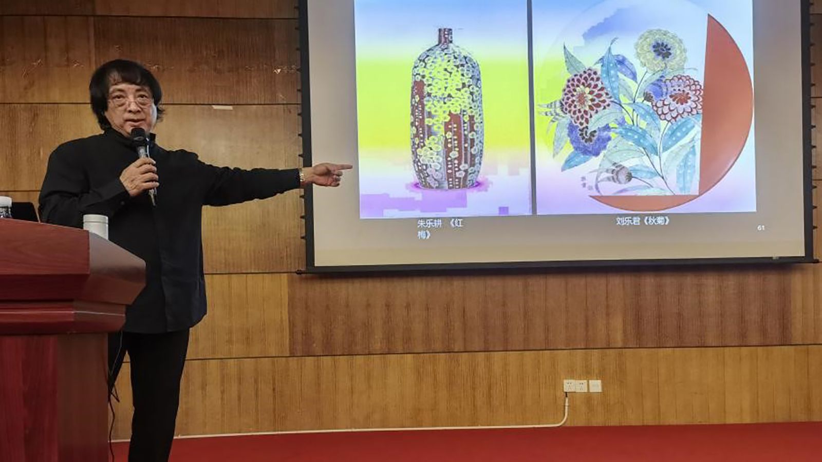 随后,宁钢教授谈到了中国陶瓷艺术的现状。通过展示国内外陶瓷艺术家,包括宁教授本人的多个重要作品,对比分析了不同文化背景下陶瓷艺术的发展特征。他指出,中国具有深厚的陶瓷文化底蕴,中国艺术家在传承传统记忆的同时,也应积极创新,创造出家具有时代特色的优秀作品,既保留中国文化的精髓,又融入当代的创新元素。此外,宁钢教授也批评了某些脱离传统、盲目追求西方艺术形式而丢失了文化根基和艺术本质的作品。