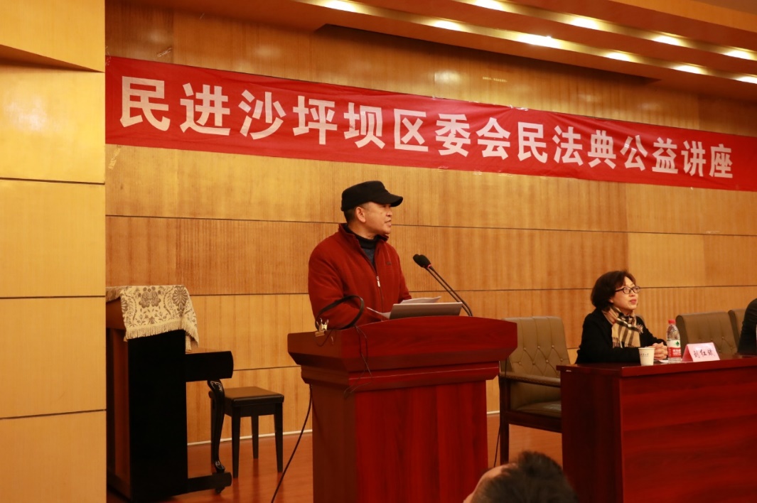 加强<中华人民共和国民法典>学习宣传教育工作方案》的精神,号召全院师生深入学习习近平总书记关于全面依法治国的重要论述特别是关于民法典的重要指示精神,深入学习实施民法典的重大意义、基本要求和主要内容,并且对民进沙坪坝区委会普法讲师团为学院送法、普法表示感谢。