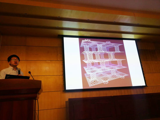 张育新教授以《材料之美》为题,从《Science》、《Cell》等期刊的封面设计开始,从材料的尺度;材料的仿生;电镜下微观材料的结构美、形式美;结构表征所表现出来的色彩美等角度,通过大量案例及精美的图片,展示了材料在微观世界里的特征,并对材料的合成等技术进行了科普。