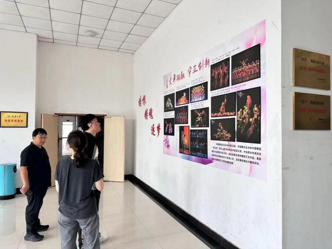 随后,刘锋一行参观了舞蹈系,赵倩介绍了舞蹈系的发展历程、人才培养与就业情况。刘锋对舞蹈系的办学成果与现有条件给予了高度评价和认可,并对舞蹈表演专业的就业方向与升学发展提出了意见建议。此次调研活动,为舞蹈表演专业进一步建设好国家级一流本科专业奠定了更加坚实的基础。