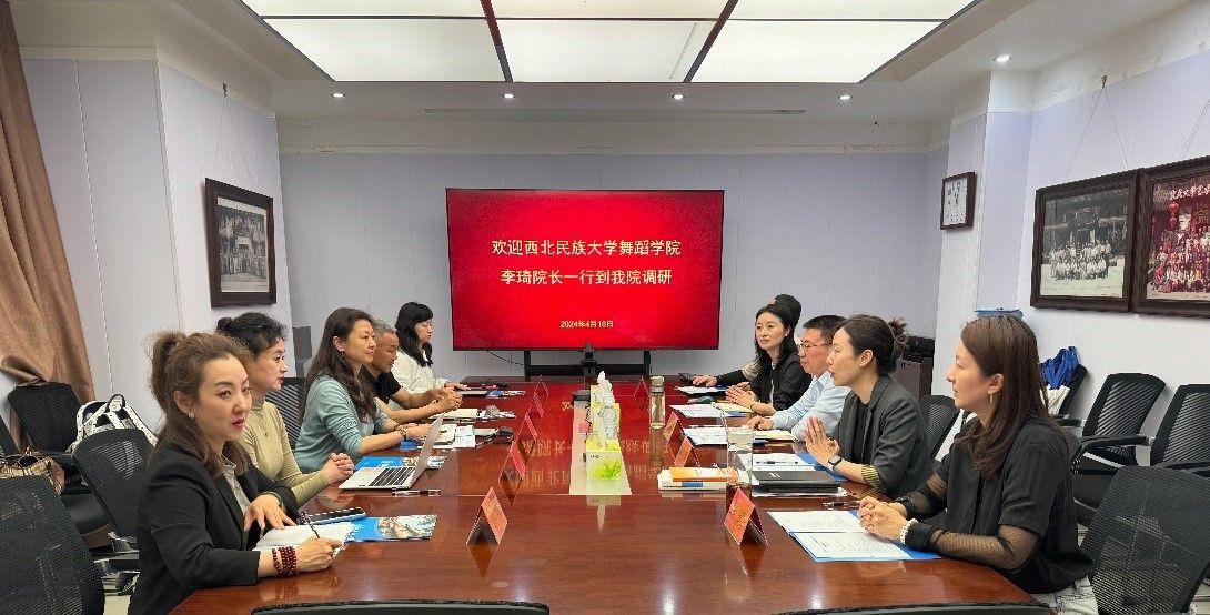2024年4月18日,西北民族大学舞蹈学院党委副书记、院长李琦教授一行五人来蘑菇视频 调研交流。蘑菇视频 党委书记蒋华林,副院长彭小希,舞蹈系主任赵倩、副主任张晓等参加座谈会。