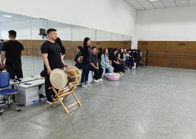 张文海一行首先观摩了舞蹈系专业课堂教学,现场交流了中国古典舞基训、中国民族民间舞、舞蹈剧目等课程教学工作。