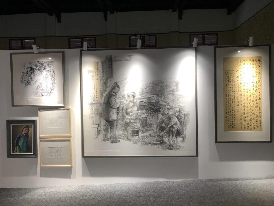 绿春考察团先后数次走访云南省红河州绿春县等地,通过现场写生与艺术考察等形式采集大量创作素材完成了系列创作。作品以绿春自然山水景观、人文历史、民族风情以及近年来当地的新发展为主要题材,部分作品已多次在各类展览中与学校师生及社会大众见面。雒三桂以撰写古散文形式结合书法艺术,抒怀徜徉于绿春迤逦壮美风光中的愉悦之情,展示了深厚的文化艺术学养;肖力以水墨人物画形式创作出绿春集市的繁荣景象,空间营造巧妙,笔墨意趣盎然;熊喜秋的水彩作品描绘了劳动人民采茶劳作场景,内容丰富,色彩和谐;高源以山水画形式创作出绿春“天空之城”的地域风貌,场面开阔,笔墨温润;武若尘的油画《哈尼老人》,刻画出老人劳作时的动态,造型生动自然,语言表达精微;范坤的系列摄影作品,以专业视角用镜头生动地捕捉哈尼族百姓幸福安乐的美好瞬间。
