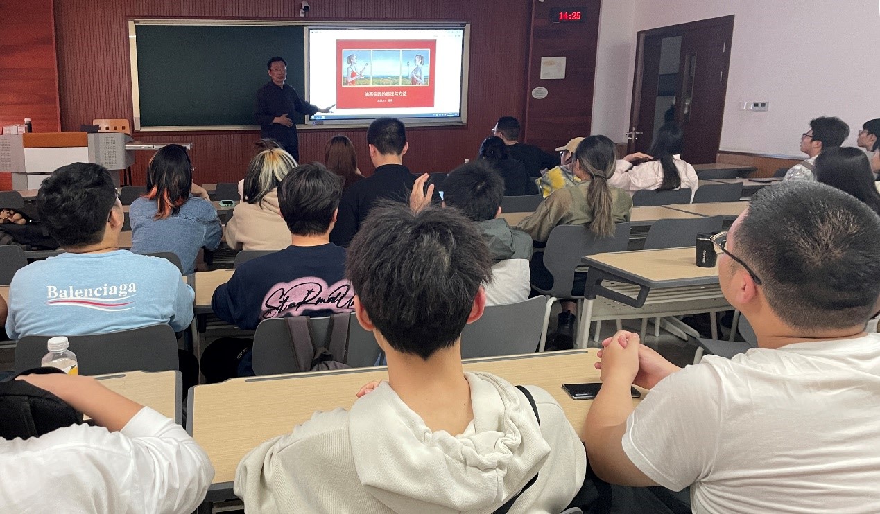 周四进行的《油画实践的路径与方法》专题讲座中,晓青从素描与色彩两方面介绍了油画学习的路径与方法。通过作品分析,向大家介绍了科学高效的观察方法和表现方法,并结合色阶训练、色谱卡、色彩排列等经验分享,建议大家养成良好的作画习惯和专业精神。通过讲解,同学们对明度、纯度、冷暖色之间的关系等问题有了更深刻的理解,令在场的师生耳目一新。