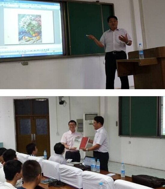 副院长郑亮教授主持,部分师生及书画爱好者聆听了此次讲座。讲座伊始,许世虎院长以自身经历为例向大家讲述了自己从初学工艺美术专业到画水彩水粉、油画等多方面绘画创造的多元化艺术创造的过程,他在绘画创作多元化的艺术求索道路上持之以恒的追求精神让在座的师生无人不钦佩。在许世虎院长的写意人生的绘画作品中,展现出了艺术教育创作的个性化、艺术教育创作的地域化、艺术教育创作的多样化、艺术教育视野的国际化。他独到的观点和绘画的技法走在时代的前沿。让蘑菇视频