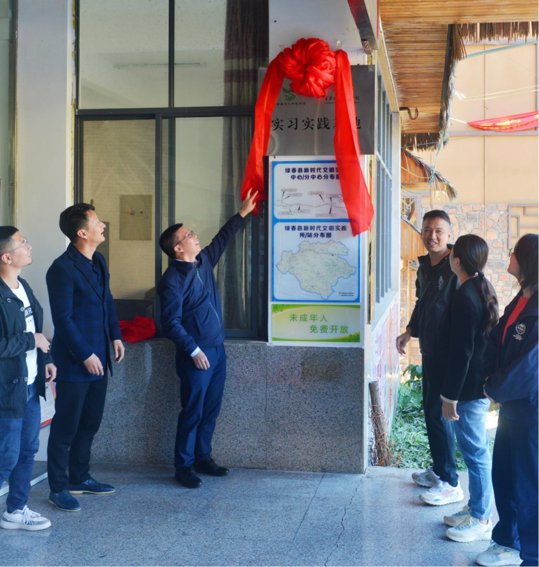 签订协议,并举行“实习实践基地”挂牌仪式,由绿春县文旅局局长邵发光与蘑菇视频