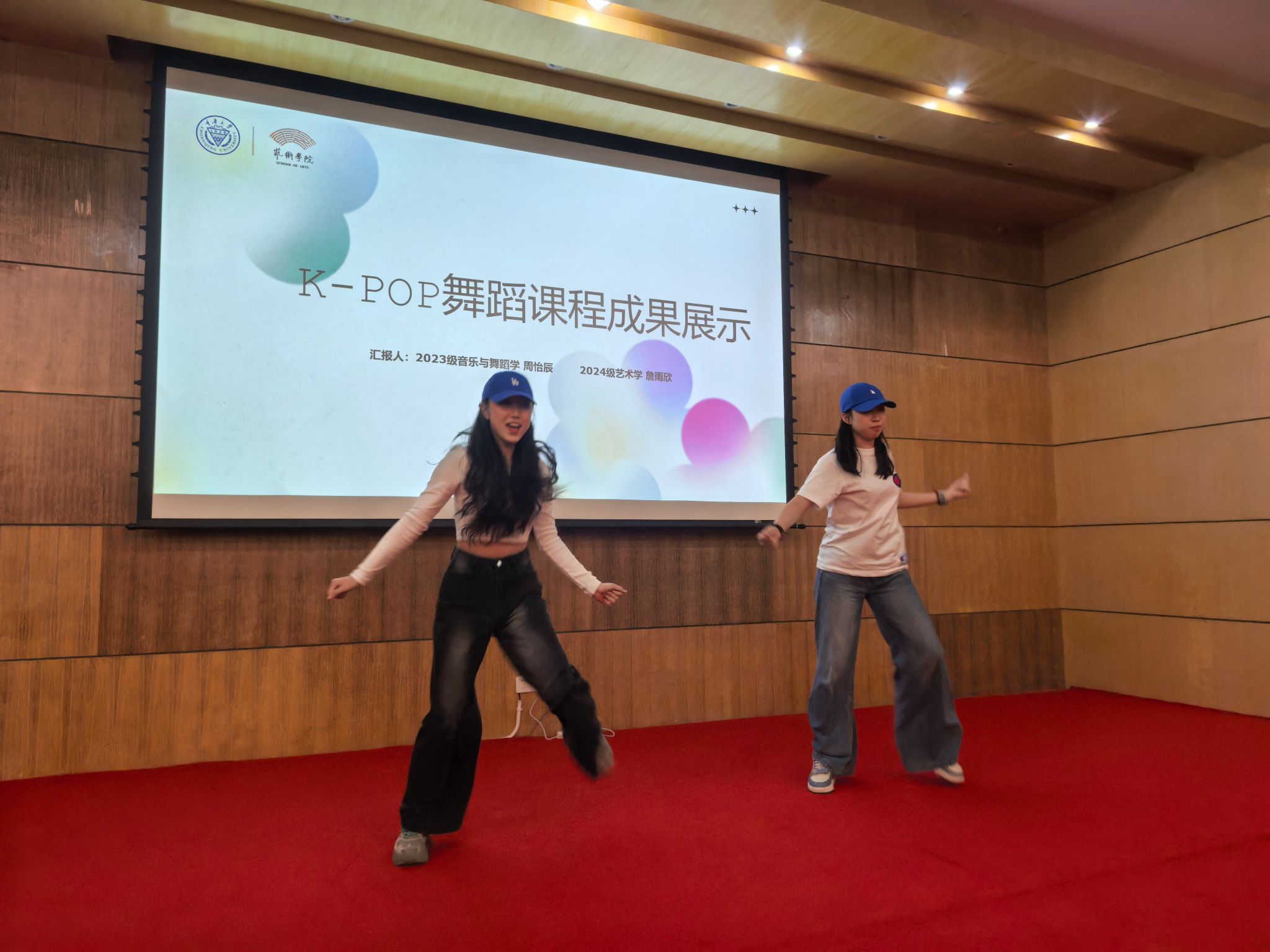 彭小希为活动致辞,充分肯定了本次暑期交流项目对于拓展学生国际视野、提升跨文化理解与专业能力的重要意义,并对同学们圆满完成交流任务、顺利归来表示祝贺。参与项目的学生进行了成果展示,结合自身在设计、美术、音乐、舞蹈等不同专业领域的特长,通过PPT演讲、作品方案展示及小型表演等多种形式,生动详实地汇报了在韩国汉阳大学的学习收获与感悟,阐述了如何将此次国际交流的所见、所学、所思与自身专业发展相结合,分享了在韩期间的文化体验与生活观察,展现了艺术学子积极向上、勤学善思的良好风貌。