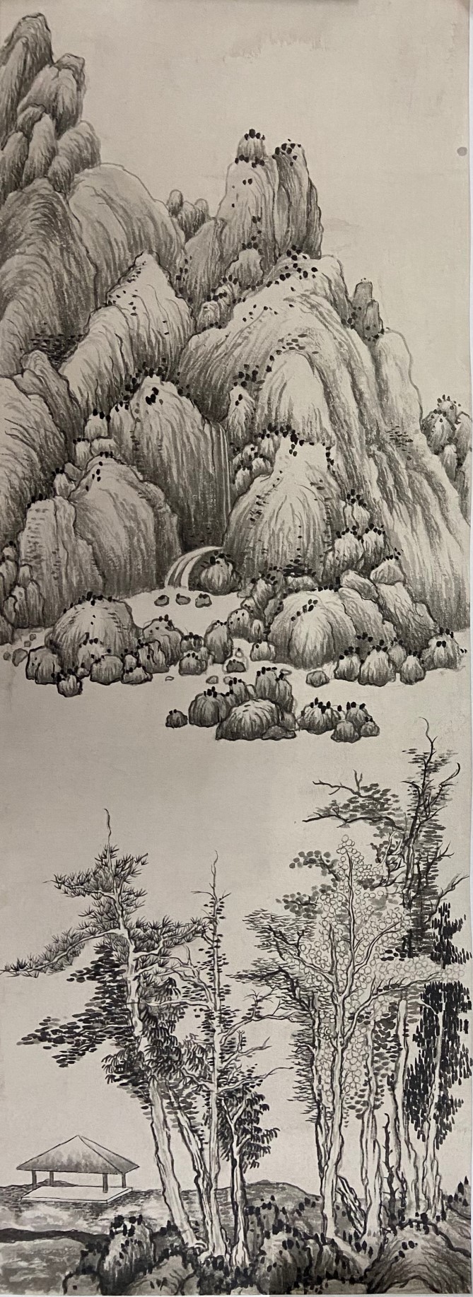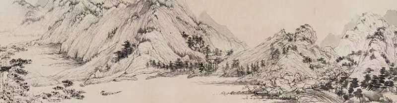 临清代龚贤《水墨山水图》110cm×40.3cm