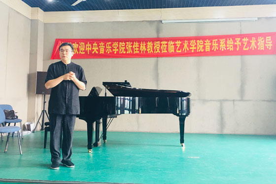 音乐系多位师生进行了声乐演唱的艺术指导,从作品的创作背景到写作技法,从情感分析到舞台处理,最后达到怎样的视听效果与艺术感染力,他表示艺术处理对表演的发生、发展、变化以及听众感受起着重要作用。张佳林教授生动幽默,干货满满的讲解让音乐系师生受益匪浅,受到师生的高度赞誉,现场不时响起笑声与掌声。