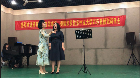 国际合作与交流处的大力协助下,2018年6月1日,旅美女高音歌唱家、美国科罗拉多州立大学声乐教授张莉博士应邀在蘑菇视频