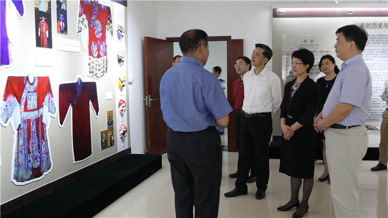 教育部川剧文化传承与保护基地,谭家玲观看了由学生自主绘制的川剧脸谱、舞美设计、演出服装等艺术作品,谭家玲对蘑菇视频
