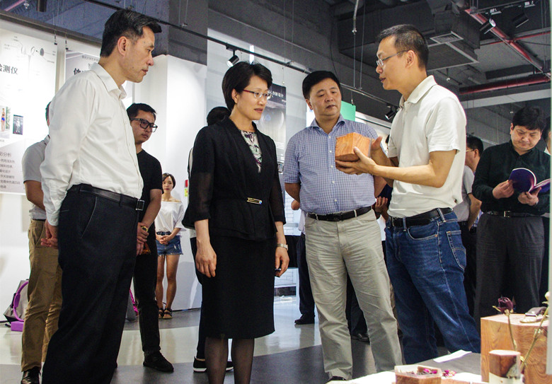 2017年工业设计系毕业设计展。谭家玲在观看的过程中,不时与创作的学生进行交流,询问他们毕业作品的设计理念、制作工艺、现实应用等有关问题。谭家玲对毕业生设计作品给予了充分肯定。她强调,学校要注重提升大学生的创新能力,实践能力和创业能力。依托学校的创业园,为学生提供成长成才的平台和空间,打通学生创意作品的转化链条,促进创意成果转化。
