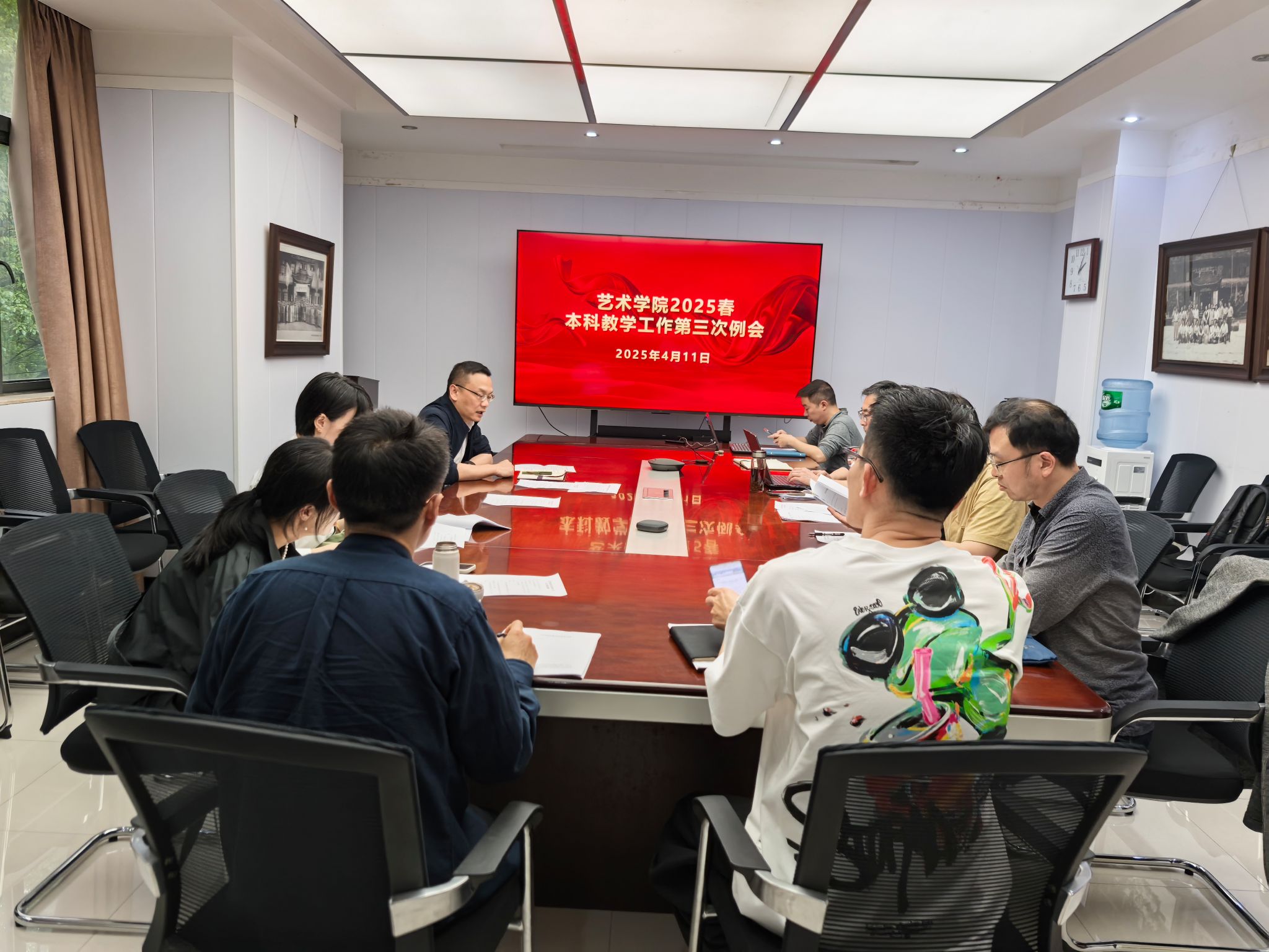 会上,夏进军通报了各系提交的人工智能研讨计划执行情况,详细讲解了如何有效地将人工智能技术融入日常教学科研,赋能教育教学实践工作,并对推动美育工作提出了具体要求。同时,还布置了2025届毕业展的筹备工作。