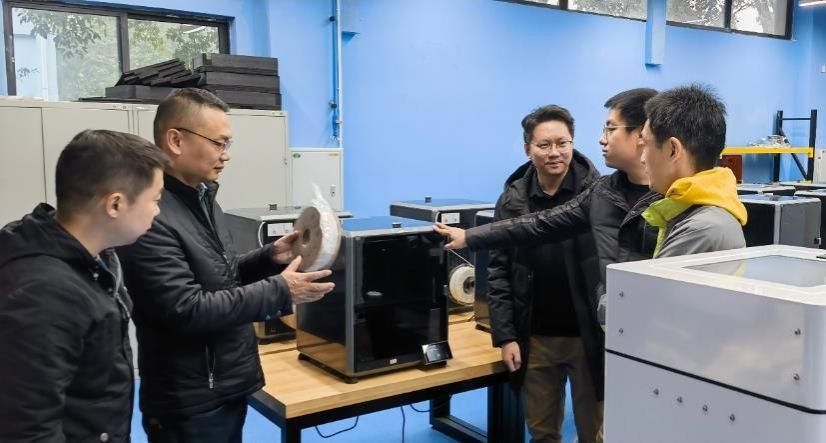 实验室建设,提高实验室管理水平,2023年12月1日,副院长夏进军带队,实验员张新翌、黄彦一行赴学校学生交叉创新中心考察调研。
