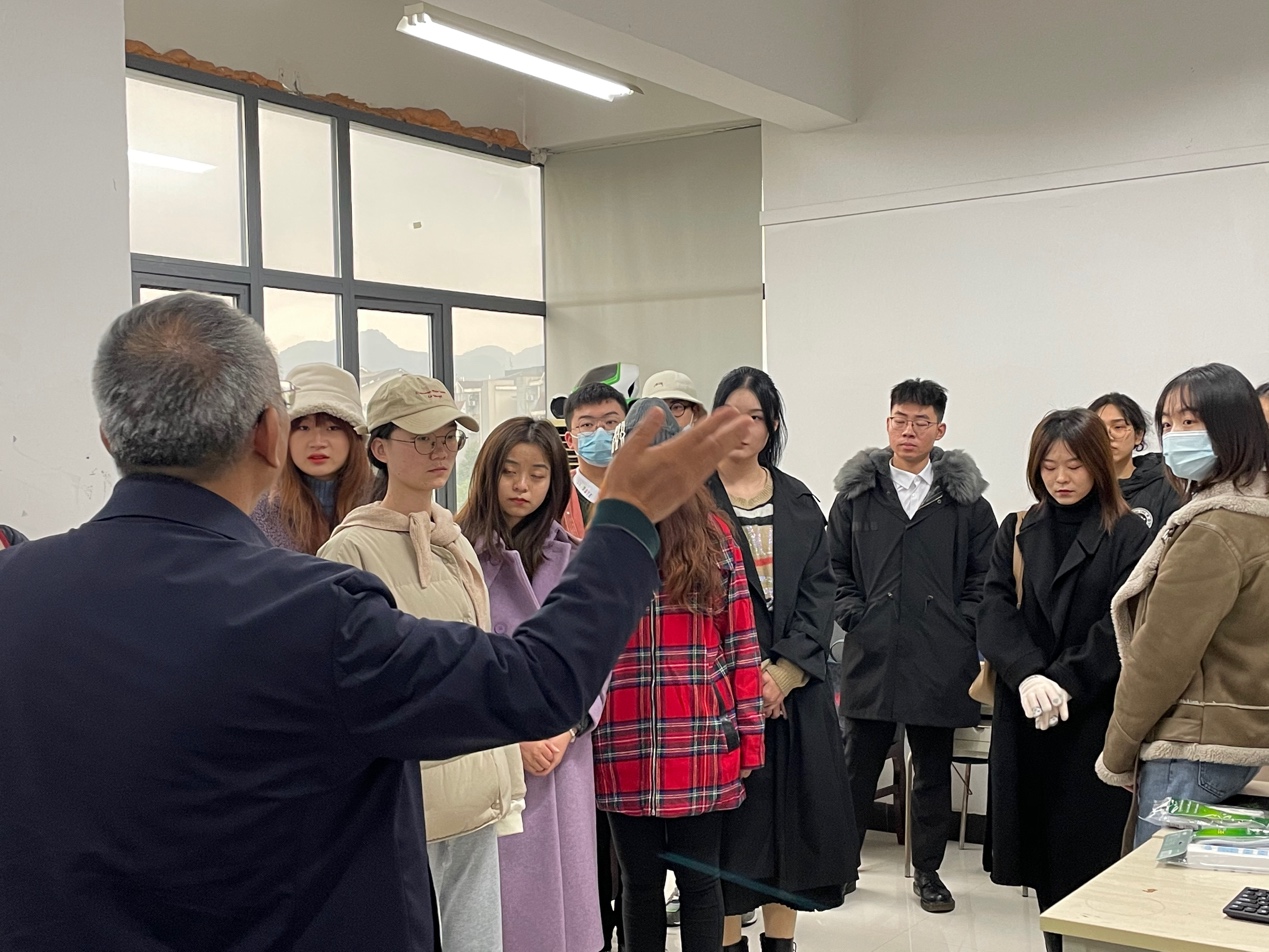 揭牌仪式后,双方进行了交流。段正鑫、李晓辉、王怀钧来到蘑菇视频 印刷包装工作室参观并对目前同学们参与的包装设计项目进行了指导。