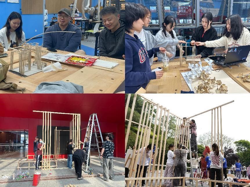 设计学系第一次应邀参赛。刘黔渝、高海燕、项之圆、范坤四位老师分别带领两组学生参与。设计学系组织一、二、三年级本科生参与报名并进行了选拔。这次参赛从开始的方案比选、木工操作训练、预搭建到最后的建造作品呈现,师生们投入课后时间倾力完成了设计作品。作品完成后吸引了磁器口大量游客的关注和参赛同行的好评。“建造季”为设计学系教学实践改革提供了新的思路。