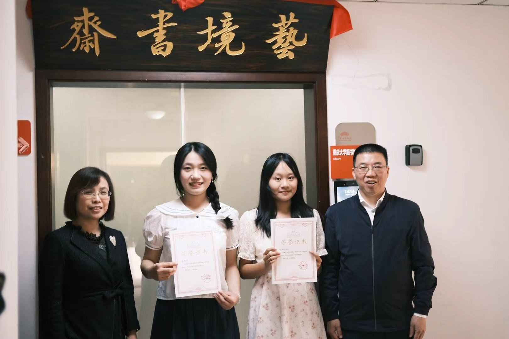 分馆取一个好名字,学院团委开展了分馆命名征集活动,经过广泛征集、学生投票及综合考虑,最终确定了“艺境书斋”之名,既表示此为艺术学科领域(境界)之书斋,也寓意艺术创作、艺术学科建设等“艺无止境”、不断追求“意境”。何栎和蒋华林为参与分馆名称征集并被综合采用的学生颁发了证书。