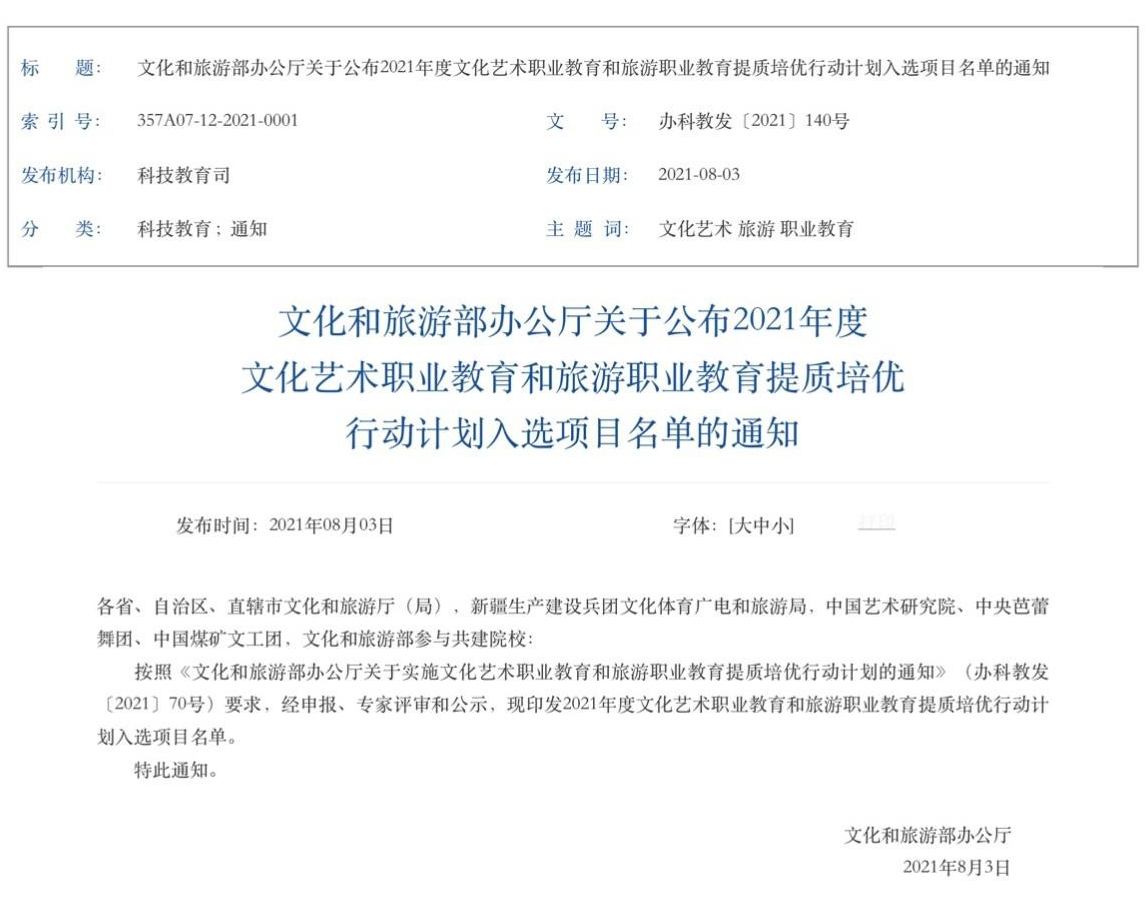 由文化和旅游部科教司主办的文化艺术职业教育和旅游职业教育提质培优行动计划项目申报工作于2021年底启动,蘑菇视频